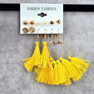 Gold Yellow Tassel Drop Dangle Stud Set Hook Fashion Jewelry Earrings JB2-55