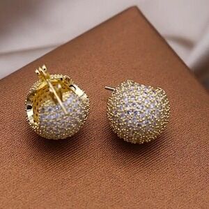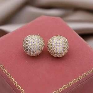 Gold Zircon Ball Earrings Luxury Exquisite Gold Plated