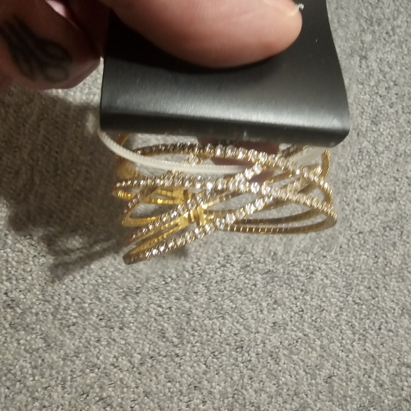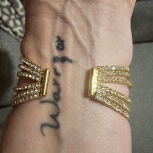 Elegant gold bangle with sparkling rhinestones. Perfect for adding a touch of glamour.