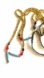 Add a touch of royal elegance to your look with this Egyptian-inspired headpiece. Features gold braided strands with dangling bead accents in red, blue, and turquoise tones. Designed to drape gracefully along the sides of the face for a regal effect.