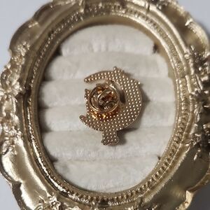 Elegant brooch featuring a black and white cat on a crescent moon. Inventory Location Box 63