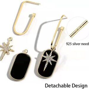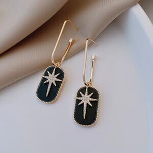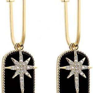 Gold and Black Dangle Earrings Hypoallergenic Sparkle Star Lightweight Women
