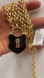 Adorn yourself in a beautiful necklace with meaning. Crafted with golden mixed metals and glass, it features a lock design accented with a sleek black design, and chunky multi-link chain with a diamond-like accent.