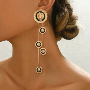 These exquisite drop earrings feature a striking lion emblem in gold and black. Perfect for elevating your style with a touch of elegance.