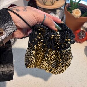 Shimmer with elegance using this gold and black sequin women's bag. Perfect for adding a touch of glamour to any outfit.