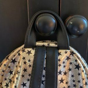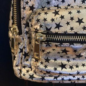 Like new! Glittery gold mini backpack with black stars. Adjustable straps, front zipper pocket, 2 inside pockets (one secure with zipper), gold hardware. See last 3 photos for approximate measurements.