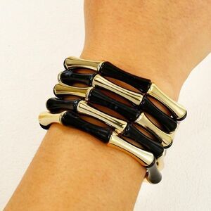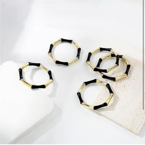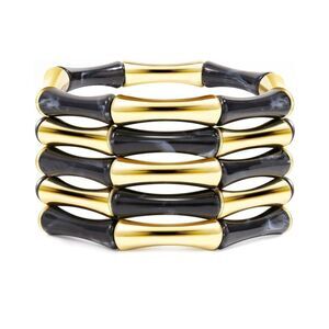 Gold and Black Bamboo-Inspired Stackable Bracelets