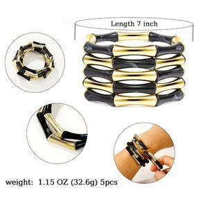 Elegant bamboo-inspired bracelet in gold and cream. Perfect for adding a touch of sophistication to any outfit. Length of these bamboo tube bangles bracelet inner size is approx 7.8 inch, set of 5.