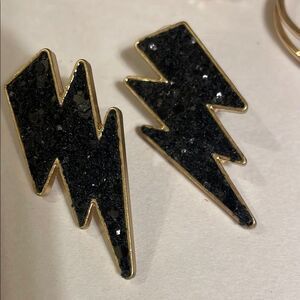 Elegant jewelry set featuring gold and black accents. Perfect for adding a touch of sophistication to any outfit. One bracelet, three pairs of earrings.