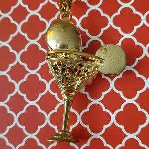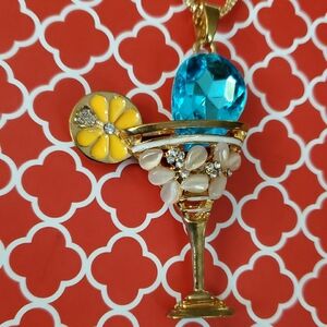 Add a splash of fun to your outfit with this gold and blue cocktail pendant necklace. Perfect for any occasion.