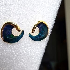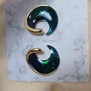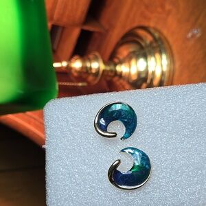 Elegant crescent earrings with gold and blue tones. Perfect for any occasion. in good condition