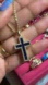 Elegant gold necklace featuring a striking blue cross pendant. Perfect for adding a touch of sophistication to any outfit.