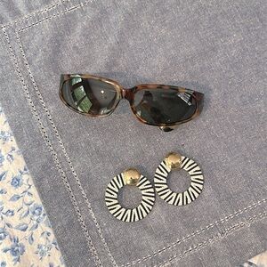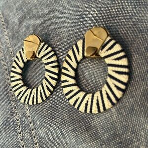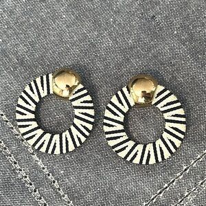 Gold and Blue Striped Hoop Earrings Vintage Estate Sale