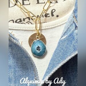 Gold and Blue solar quartz Pendant Necklace