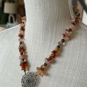 • Surrounded by warm-toned gemstone chips (carnelian, fire agate, and agate chips)