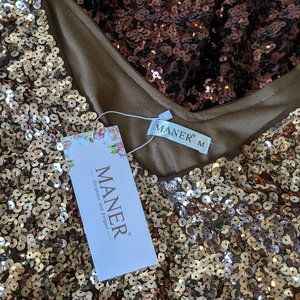 Gold and brown ombre short sleeve sequin party dress by Maner.