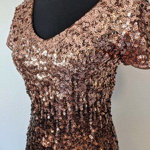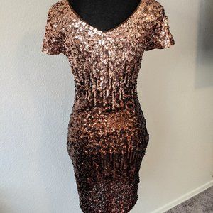 Gold and Brown Ombre Short Sleeve Sequin Dress- Size M