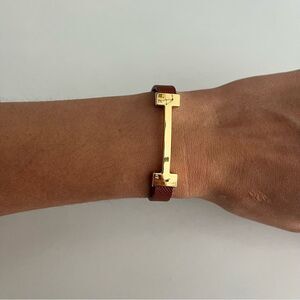 Brand new 18k gold plated bracelet features a stunning gold finish paired with a rich brown band, perfect for adding a touch of sophistication to any outfit.