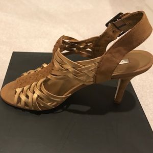 WORN ONCE Cynthia Vincent gold/brown cage heeled sandals. GREAT for spring and summer SUPER COMFORTABLE!!