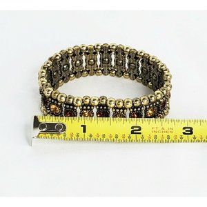 Gold and Burgundy Rhinestone Stretch Bracelet