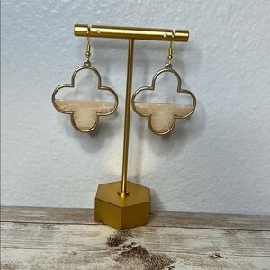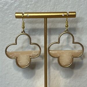 Elegant clover-shaped earrings in gold and cream. Perfect for any occasion. Great condition Measurements in photo A13