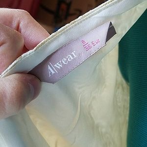 This a beautiful cream dress with gold embroidery throughout. It has two invisible pockets on the side and zips up the back. It is such a flattering style and is in excellent used condition. Feel free to make an offer!