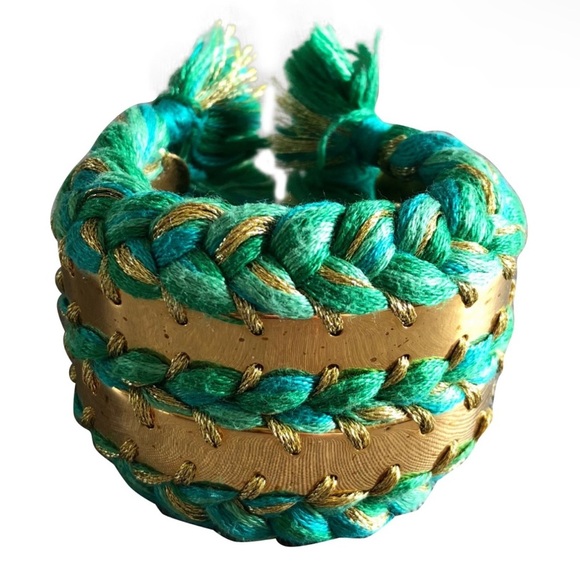 This exquisite bracelet features a stunning braided design in gold and green, offering a rich, textured appearance. The layered structure adds depth, making it a standout piece in any jewelry collection. Perfect for those who appreciate unique craftsmanship and vibrant colors. Adjustable Preppy meets funky boho