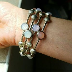 Perfect for spring this bracelet wraps around 4 and a half times .. Stretches a bit so looks huge on my wrist I'd have to wear it halfway way up my arm hence why I'm selling . I absolutely love the colors of the stones and would love to wear just a bit too big. Never worn. NWOT