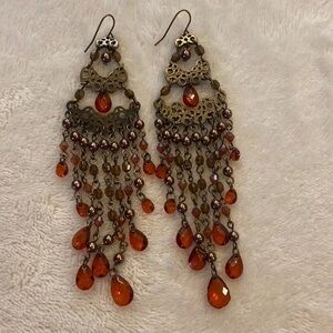 Gold and Orange Dangling Gem Earrings. Good condition just needs polishing