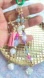 Elegant gold and pink beaded keychain with heart charms. Perfect for adding a touch of style to your accessories.