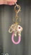Elegant gold elephant keychain with pink accents. Features sparkling rhinestones and a braided pink loop.