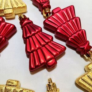 Gold and Red plastic Christmas Tree Ornament Bundle with hangers