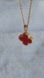 Elegant gold necklace featuring a striking red clover pendant. Perfect for adding a touch of sophistication to any outfit.