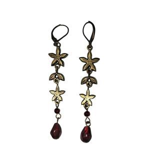 Gold and Red Floral Dangle Earrings with Gemstone Accents