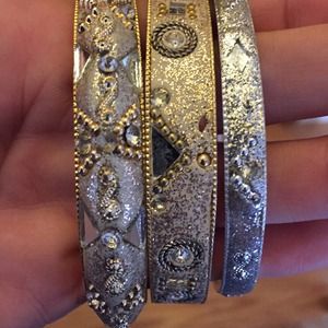 6 pc. gold and silver bangles! They all have cute little studs and mirrors. Perfect for that last touch accessory!
