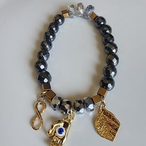 Elegant charm bracelet featuring gold and silver hematite . Perfect for adding a touch of sophistication to any outfit.