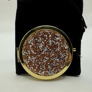 Elegant gold and silver compact mirror with a sparkling design. Perfect for quick touch-ups on the go.