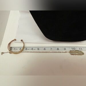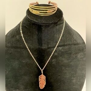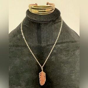 Elegant gold and silver feather necklace perfect for any occasion. Add a touch of sophistication to your outfit.