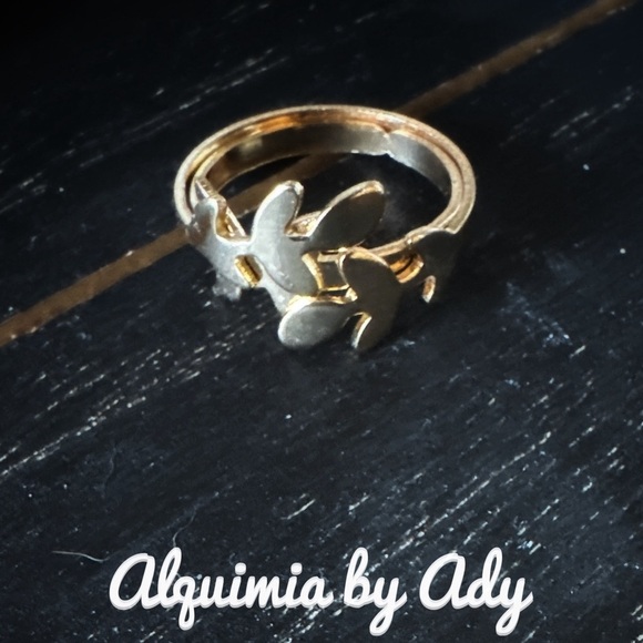 Stylish gold and silver ring with leaf design. Perfect for any occasion.