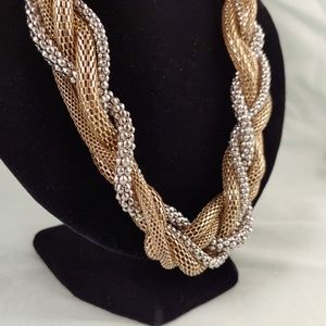 Gold and Silver Metal Braid Weave Necklace Weave Braided 5 Strands 24"-27"