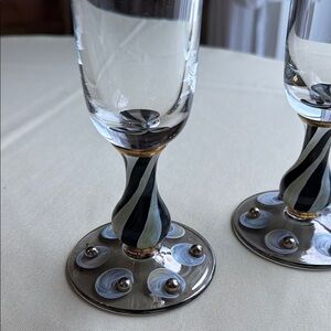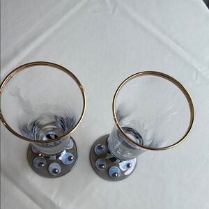 These exquisite rare drinkware flutes feature a luxurious gold rim and a decorative stem, perfect for elevating any dining occasion. The clear glass body allows for a beautiful display of your favorite beverages, making them an ideal choice for celebrations.