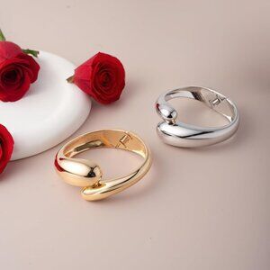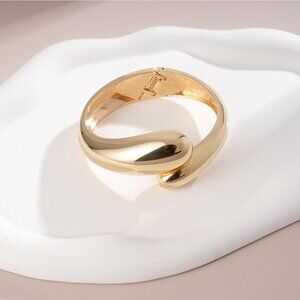 Features: This statement-making bangle shines with a sleek, polished surface and a modern twisted design. Crafted with a sturdy zinc alloy that's plated in 14K gold for a rich, durable finish that resists fading. The open cuff with a hinge makes it easy to slip on and off, perfect for dressing up or adding a touch of luxe to your everyday look.