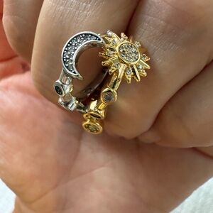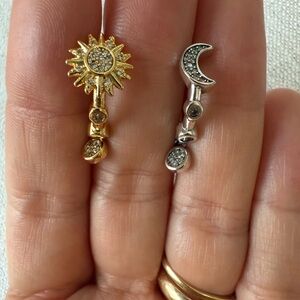 Elegant gold and silver earrings featuring a sun and moon design with sparkling accents. Perfect for adding a celestial touch to any outfit.