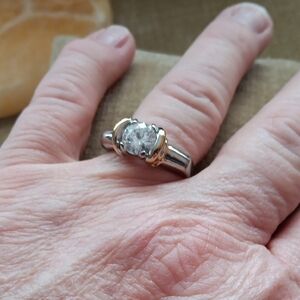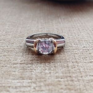 Gold and Silver Tone Clear Glass Multi-faceted Set Ring