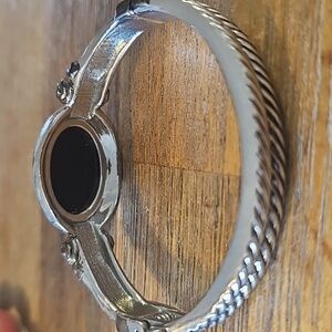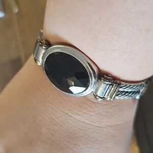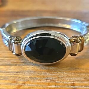 Gold and Silver Tone with BLack Onyx Rope Design Bangle Bracelet