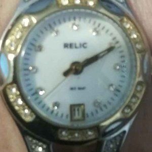 Gold and Silver Two toned Relic watch with clear crystal accents.. (battery not included)