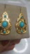 Elegant gold dangle earrings featuring vibrant turquoise stones. Perfect for adding a touch of sophistication to any outfit.