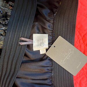 Elastic waistband metallic gold maxi skirt with velvet wallpaper patterning.