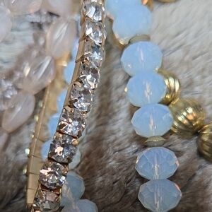 Elevate your style with the Gold and White Bracelet Set. This elegant collection features shimmering gold and delicate white tones, perfect for any occasion.