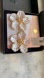 Elegant floral earrings by , featuring a stunning combination of gold and white. Perfect for adding a touch of sophistication to any outfit.